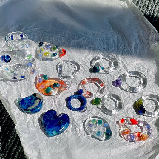 Each piece is handcrafted from glass in small batches, making it truly one of a kind. Made slowly and thoughtfully in our Sydney studio, our jewellery carries light, emotion, and intention. We reuse materials where possible, use plastic-free packaging, and donate 5% of profits to Australian charities supporting women. Wear it gently—it's made with care.